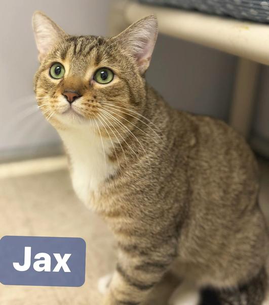 Notes: Jax and Sax are both a year old and around 10 Ibs. Both of these boys have such sweet personalities always wanting to be loved on and also just wanting to lounge around. These guys are brothers and would love to be adopted together but they are not bonded and can be adopted separately.